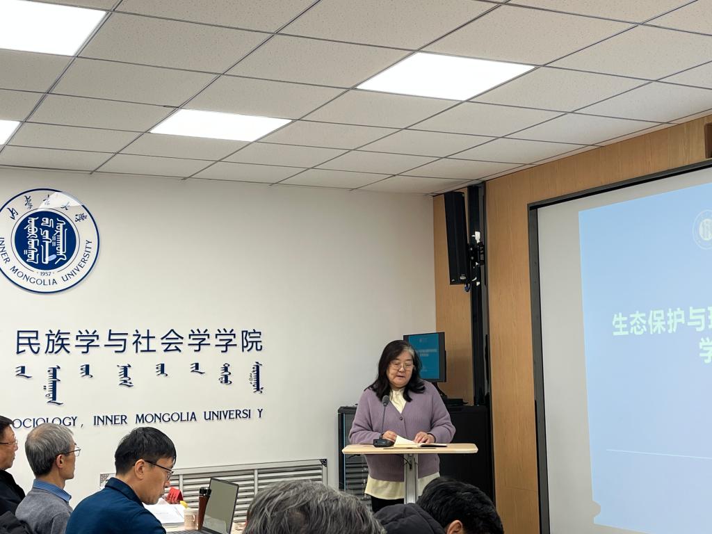 12月19日下午,我院举办生态保护与环境治理跨学科对话学术研讨会。内蒙古大学党委委员、统战部部长斯琴高娃教授,内蒙古楚日雅牧区生态研究中心达林太研究员,内蒙古师范大学地理科学学院呼格吉勒图教授、民族学人类学学院常宝教授,内蒙古大学生命科学学院陈贵林教授、经济管理学院杨理教授、文学与新闻传播学院冯文开教授等应邀出席。我院党委书记张士伟、王俊敏教授、孟和乌力吉教授及来自区内高校、科研机构的专家学者、研究生40余人参加会议。会议由孟和乌力吉教授主持。