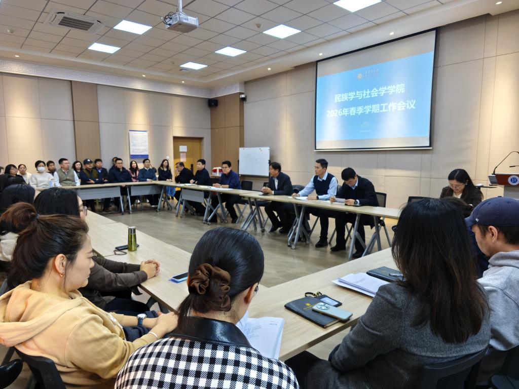 2026年3月19日,我院在逸夫楼217会议室召开全院春季学期工作会议。特聘院长孛尔只斤乌云毕力格、党委书记娜仁出席会议并讲话,执行院长宋跃飞主持会议,学院领导班子成员、全体教职工参加会议。