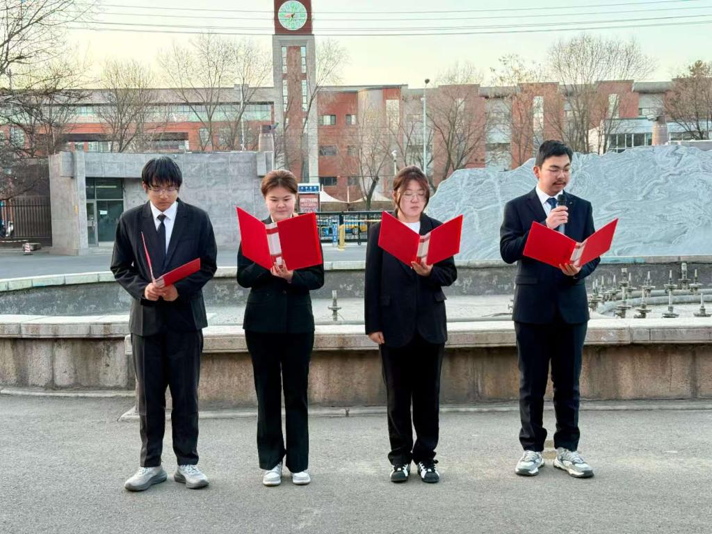 2026年3月9日7时,民族学与社会学学院在赛罕校区主楼门前举行庄严的升旗仪式,本次仪式由李婧老师主持。